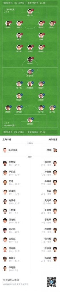 申花vs梅州首发:3外援PK4外援!刘诚宇、李可出战,罗德里格登场